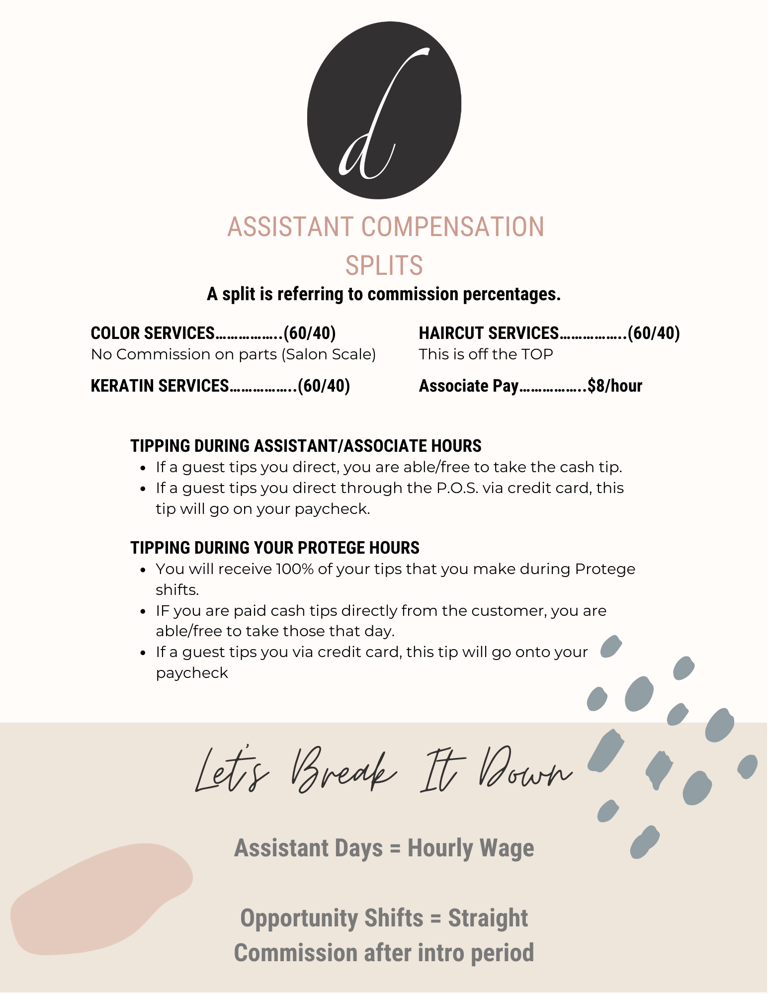 Pay structure, when you get your tips, how you get your pay, etc.